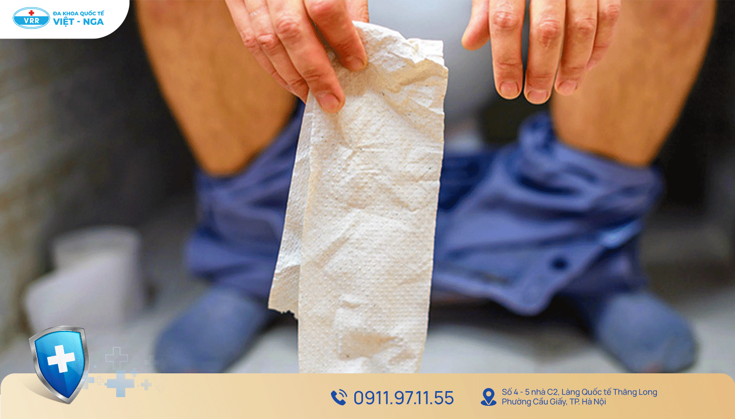 - Xuất hiện máu trong phân hoặc trên giấy vệ sinh.