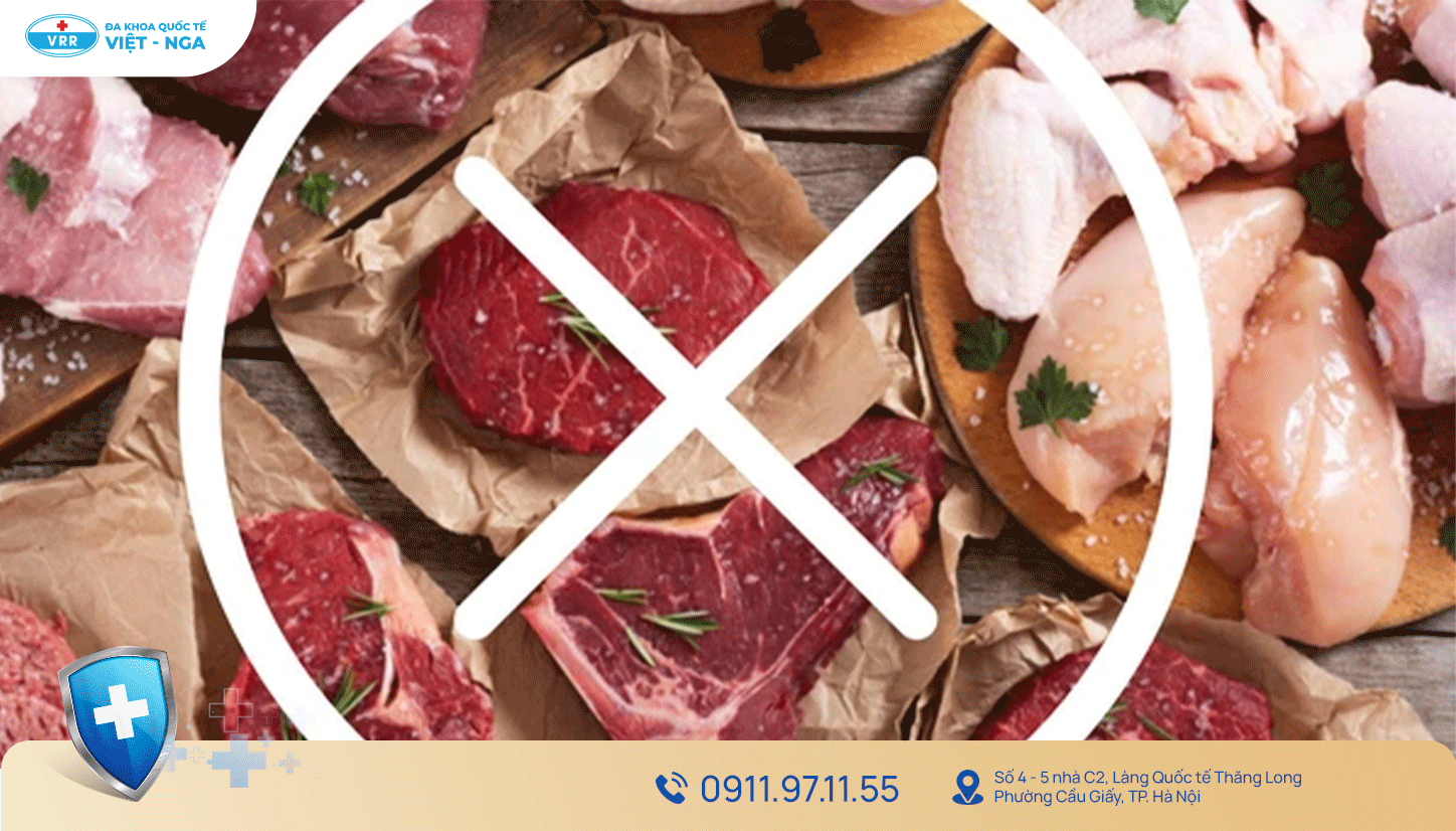 - Hạn chế ăn thịt đỏ, thức ăn nhiều chất béo, chế biến sẵn.
